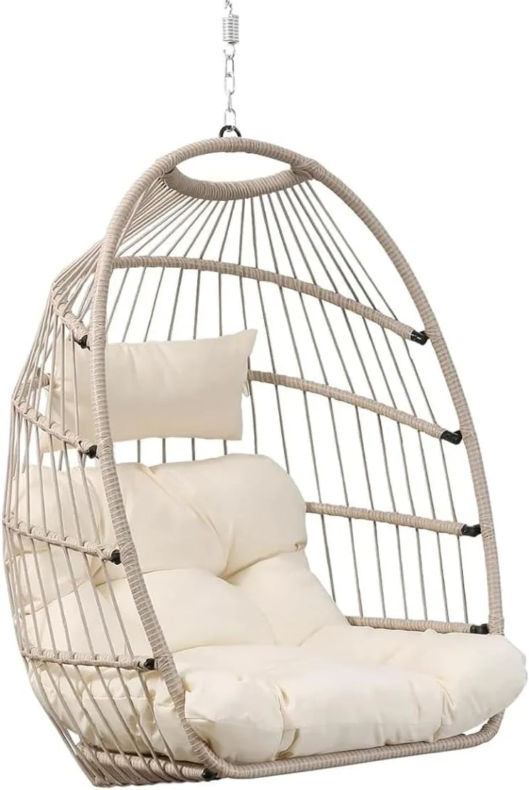 Ce fauteuil avec des dimensions de 81 x 75 x 110 cm offre un espace généreux. Le coussin à bascule et l'appui-tête sont fabriqués dans un tissu respectueux de la peau. Cette balancelle pliante est fabriquée en tubes d'acier épais résistants, recouverts de peinture antirouille pour une utilisation en extérieur. Le panier est solide et résistant à la rouille. Contenu : 1 chaise en forme d'œuf, 1 coussin de siège, 1 appui-tête d'oreiller.